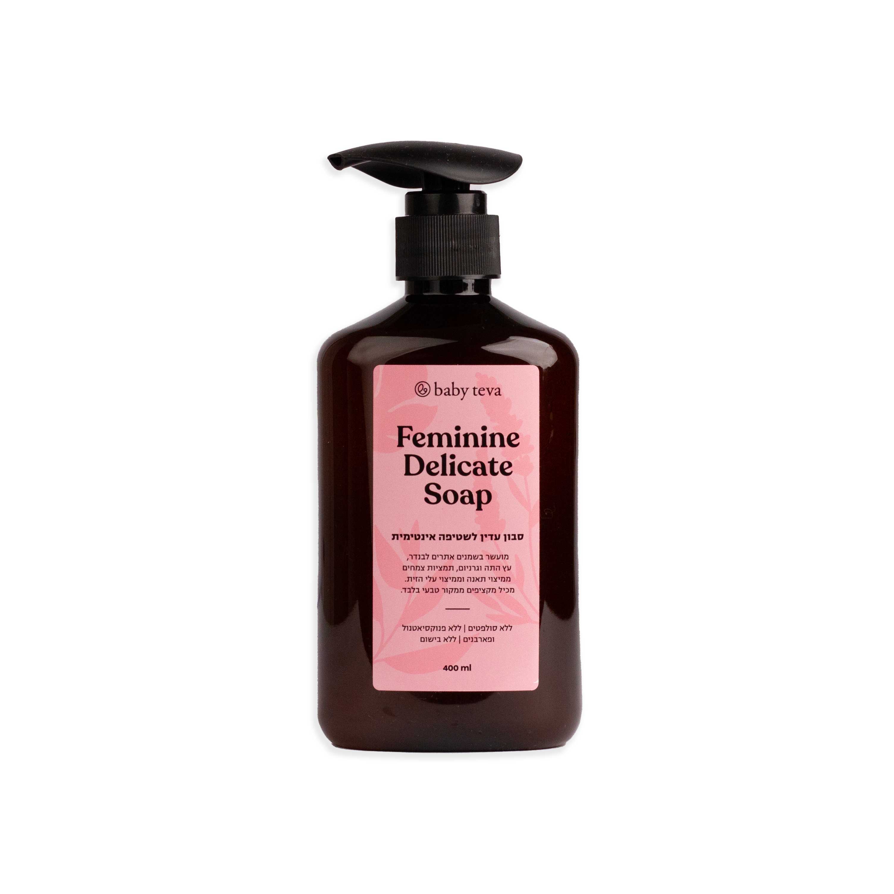 סבון נוזלי לשטיפה בהריון ולאחר לידה, מומלץ במיוחד לאחר תפרים וכן באופן כללי לאחר הלידה ולרגישות במהלך ההריון. בעל ריח עדין, מועשר בשמנים אתריים: לבנדר, עץ התה וגרניום ותמציות צמחים ממיצוי תאנה וממיצוי עלי הזית.