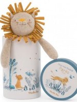 בובת אריה של החברה הצרפתית Moulin Roti עשויה מבדים ומרקמים שונים ונעימים למגע