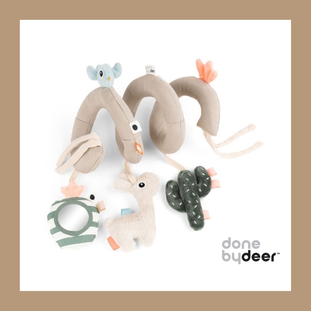 ♥ שרשרת פעילות לתינוק done by deer - שרשרת התפתחות עם אלמנטים שונים למישוש וצלילים וטבעות נשכנים להקלה על כאבי בקיעת שיניים. הסםירלה מתאימה למיטת התינוק, עגלה, סלקל, לול וגם למשחק חופשי. מתאים מגיל לידה